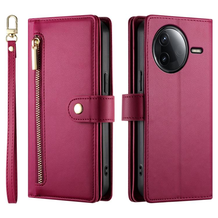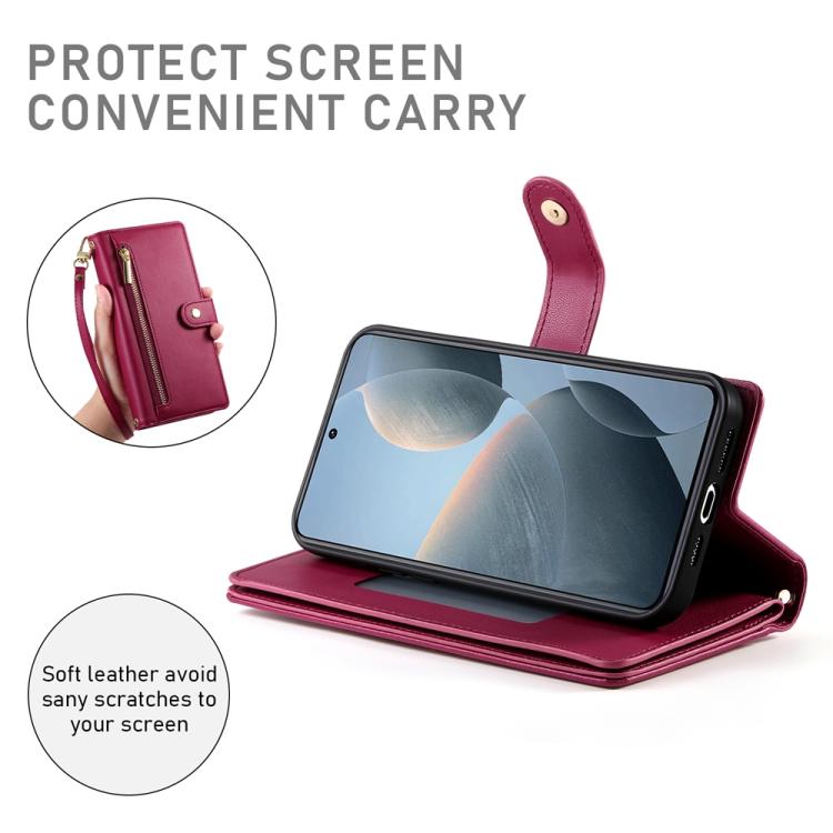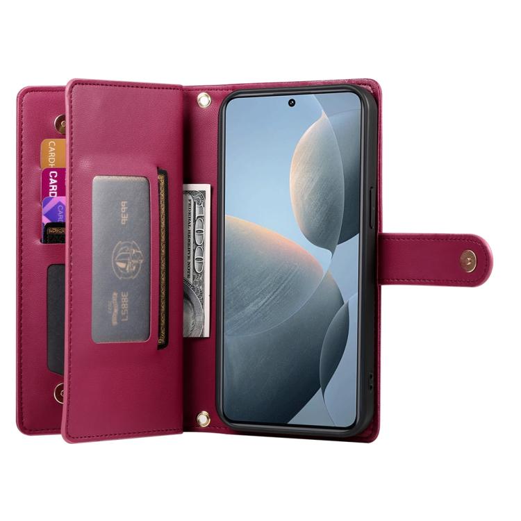 Funda de cuero con cremallera y ranura para tarjetas para Redmi K80/K80 Pro (rojo)
