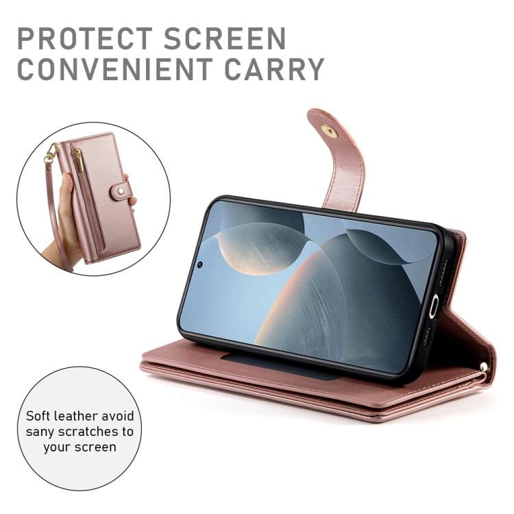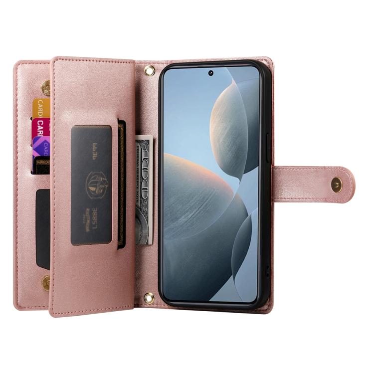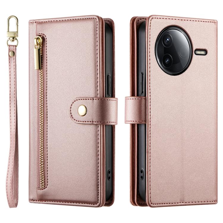 Funda de cuero con cremallera y ranura para tarjetas para Redmi K80/K80 Pro (rosa)