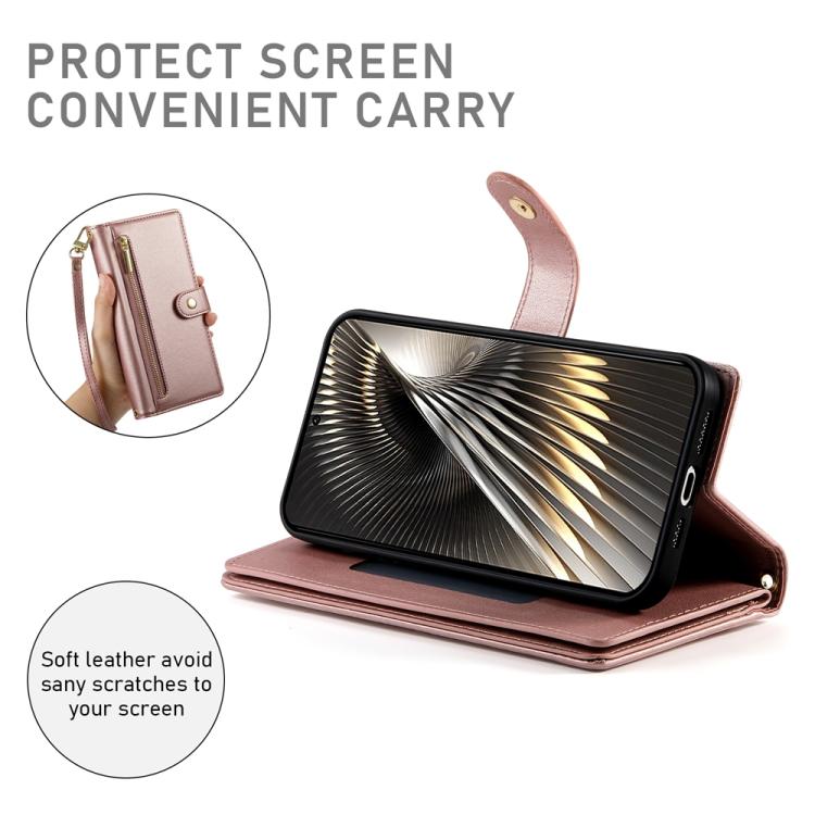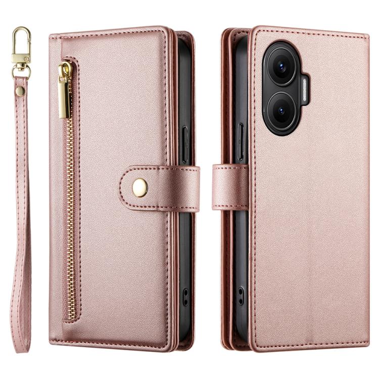 Funda de cuero con cremallera y ranura para tarjetas para Redmi Turbo 4 Pro y Xiaomi Poco F7 (rosa)