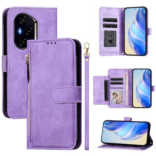 Funda de Cuero con Cremallera y Ranuras para Múltiples Tarjetas para Honor 400 (Morado)