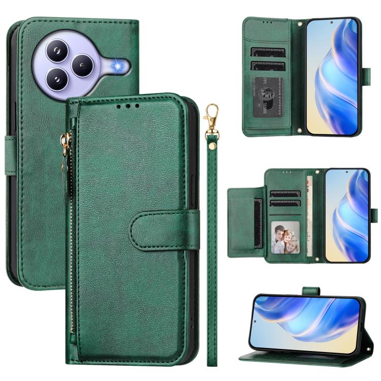 Funda de cuero con cremallera y ranuras para múltiples tarjetas para Xiaomi Civi 5 Pro (verde)