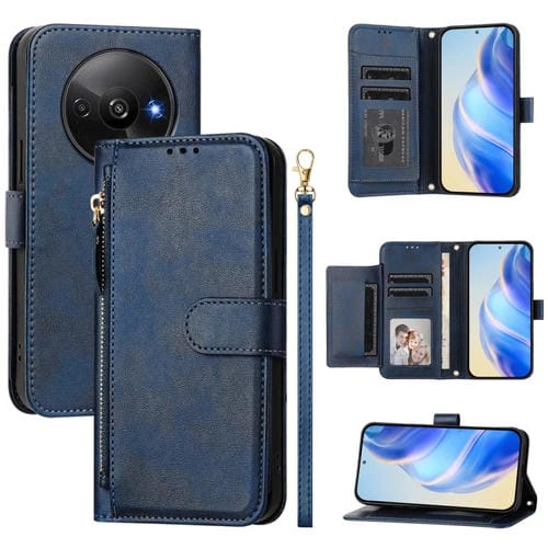 Funda de Cuero con Cremallera y Ranuras para Varias Tarjetas para Redmi A3 4G Global/A3X 4G (Azul)