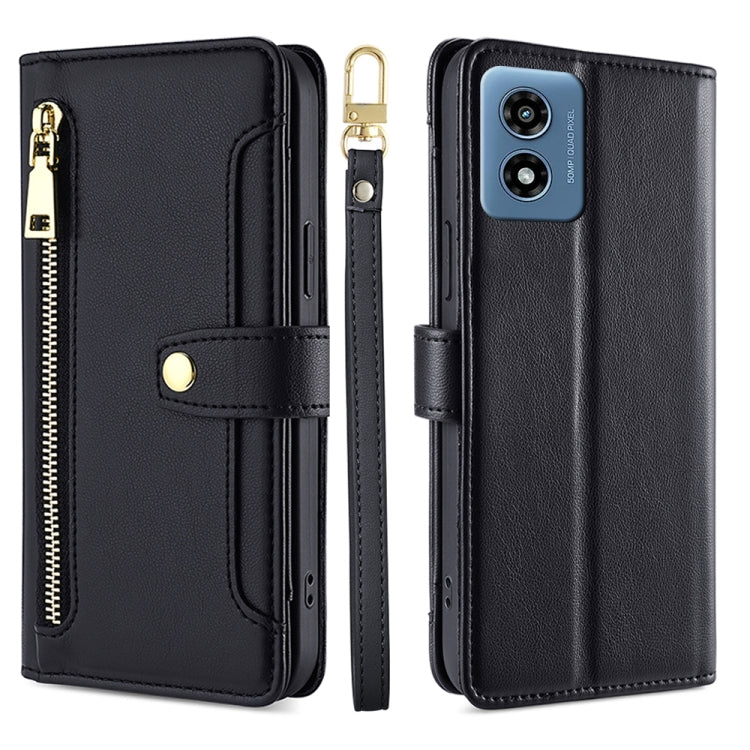 Funda de Cuero con Cremallera y Textura de Oveja para Motorola Moto G 5G (2024) (Negra)