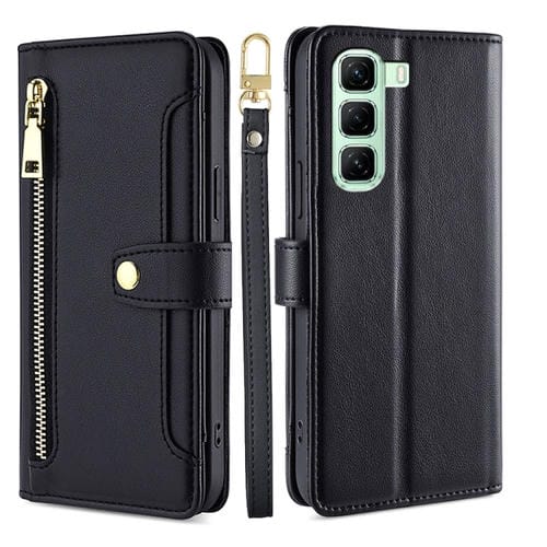 Funda de Cuero con Cremallera y Textura de Oveja para Infinix Hot 50 5G (Negro)