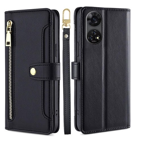 Funda de Cuero con Cremallera para ZTE Anshin Family Lite Textura de Oveja (Negro)
