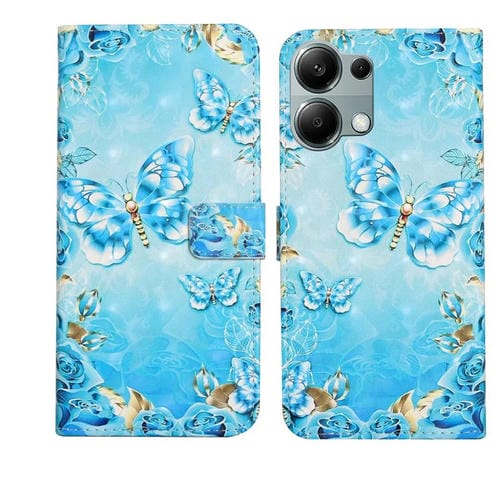 Funda de Cuero con Dibujo 3D En Relieve de Aceite para Redmi Note 13 Pro 4G (Mariposas Azules)