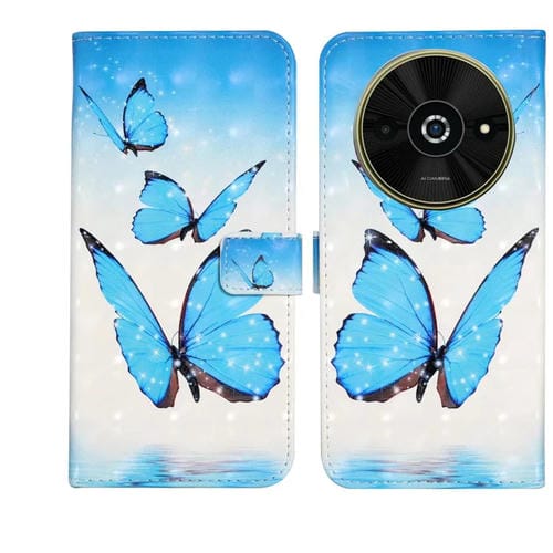 Funda de Cuero con Dibujo 3D En Relieve de Aceite para Xiaomi Poco C61 (3 Mariposas)