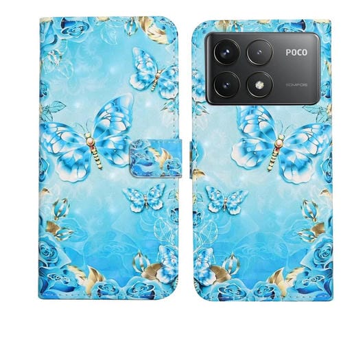 Funda de Cuero con Dibujo 3D En Relieve de Aceite para Xiaomi Poco F6 Pro (Mariposas Azules)