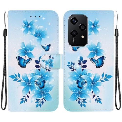 Funda de Cuero Honor 200 Lite con Dibujo a Color y Textura de Cristal (Mariposas Azules)