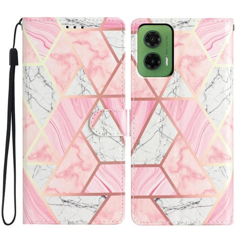 Funda de Cuero Motorola Moto G35 con Dibujo de Colores (Mármol Rosa)