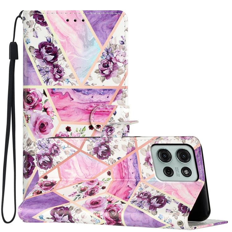 Funda de Cuero Motorola Moto G75 5G con Dibujo de Colores (Mármol Morado)