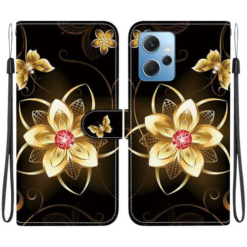 Funda de Cuero con Dibujo de Colores y Textura de Cristal Global para Redmi Note 12 4G (Flor Dorada)