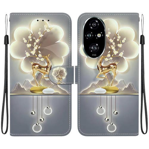 Funda de Cuero con Dibujo de Colores y Textura de Cristal para Honor 200 Pro 5G (Ciervo Sika)
