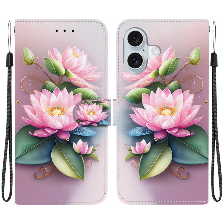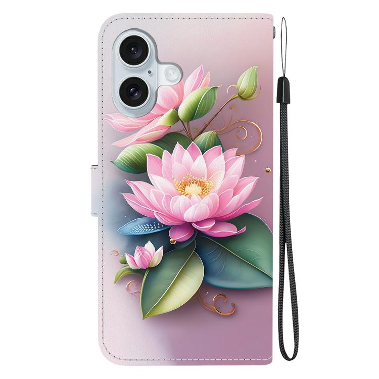 Funda de Cuero para iPhone 16 Lotus con Dibujo de Colores y Textura de Cristal