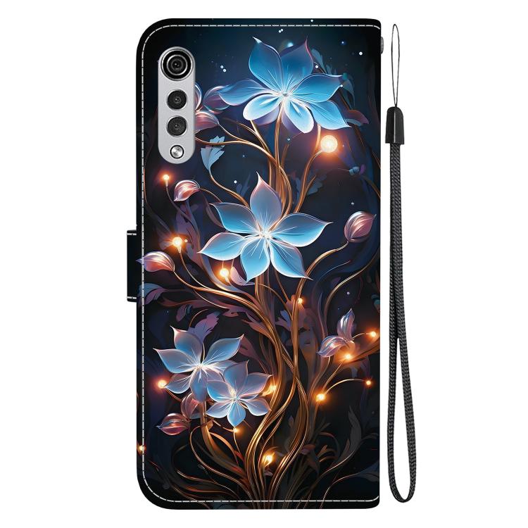 Funda de Cuero con Dibujo y Textura de Cristal para LG Velvet 5G/G9 4G (Flor de Linterna Pequeña)