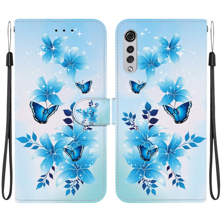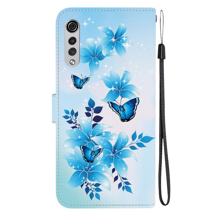 Funda de Cuero para LG Velvet 5G y G9 4G con Dibujo de Colores y Textura de Cristal (Mariposas Azules)