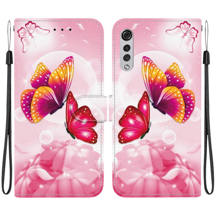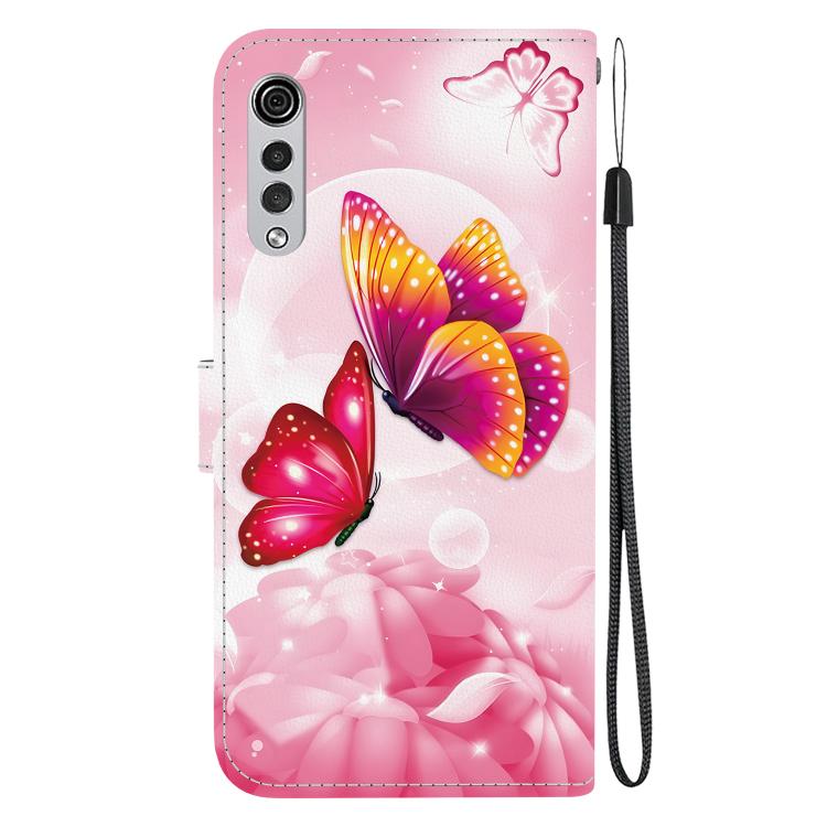 Funda de Cuero con Dibujo y Textura de Cristal para LG Velvet 5G y G9 4G (Mariposas Rosas)