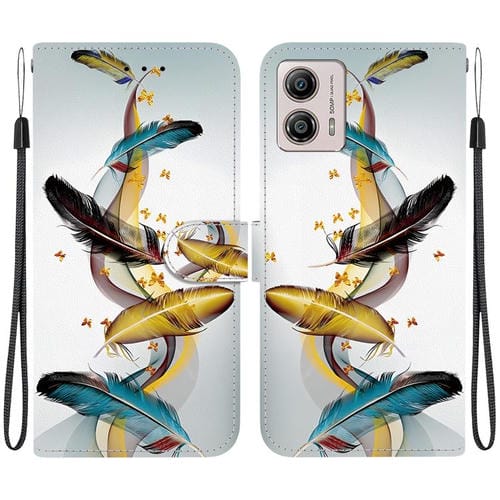 Funda de Cuero para Motorola Moto G13/G23/G53 con Dibujo de Colores y Textura de Cristal (Plumas de Mariposa Doradas)