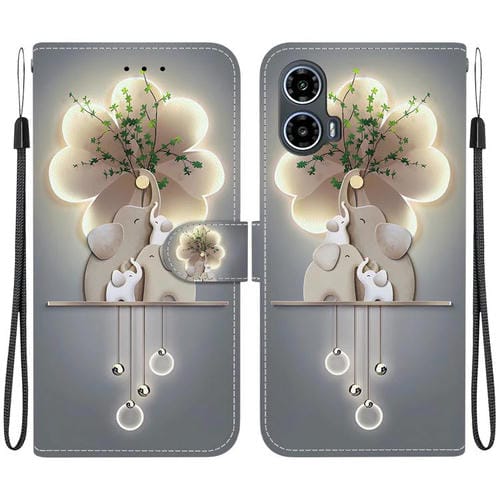 Funda de Cuero con Dibujo y Textura de Cristal para Motorola Moto G34 5G (Elefantes)