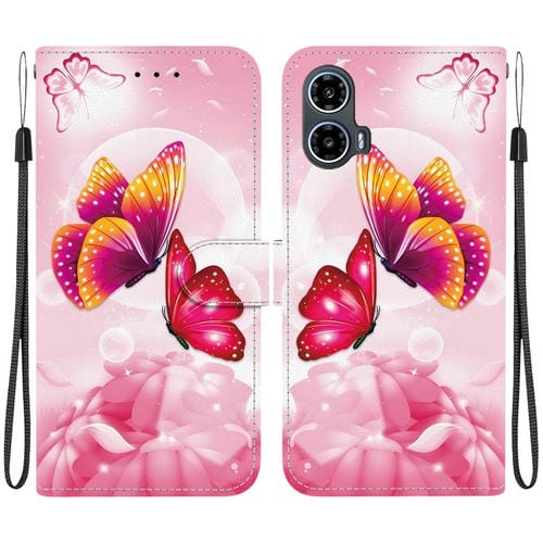 Funda de Cuero con Dibujo y Textura de Cristal para Motorola Moto G34 5G (Mariposas Rosas)