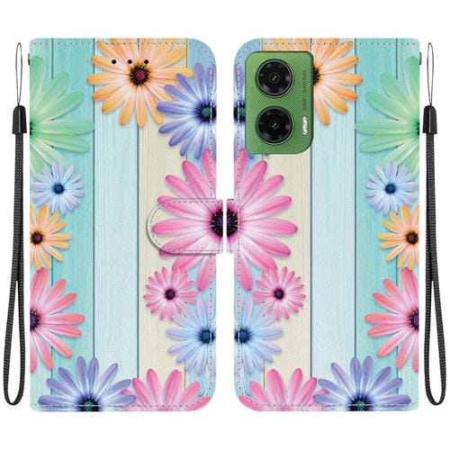 Funda de Cuero Motorola Moto G35 con Dibujo de Colores y Textura de Cristal (Girasoles)