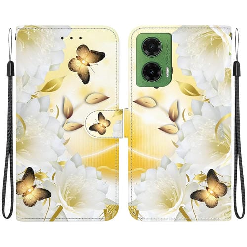 Funda de Cuero para Motorola Moto G35 con Dibujo de Colores y Textura de Cristal (Mariposa Dorada Epiphyllum)