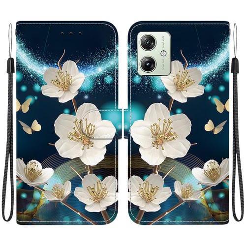 Funda de Cuero para Motorola Moto G54 con Dibujo de Colores y Textura de Cristal (Magnolia)