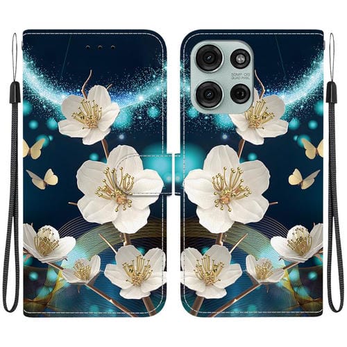 Funda de Cuero Motorola Moto G75 5G con Dibujo de Colores y Textura de Cristal (Magnolia)