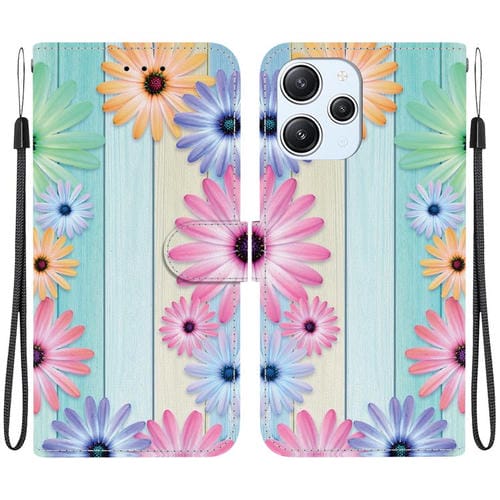 Funda de Cuero con Dibujo de Colores y Textura de Cristal para Redmi 12 4G/5G/Poco M6 Pro (Girasoles)