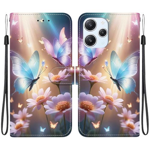 Funda de Cuero con Dibujo de Colores y Textura de Cristal para Redmi 12 4G/5G/Poco M6 Pro (Mariposa, Amor y Flores)