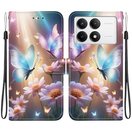 Funda de Cuero con Dibujo de Colores y Textura de Cristal para Redmi K70/K70 Pro (Mariposa, Amor y Flores)