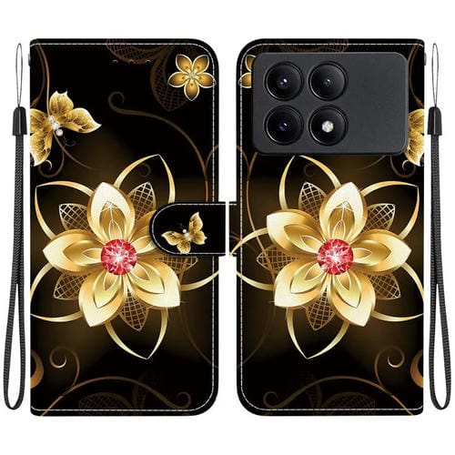 Funda de Cuero con Dibujo de Colores y Textura de Cristal para Redmi K70E/Poco X6 Pro (Flor Dorada)