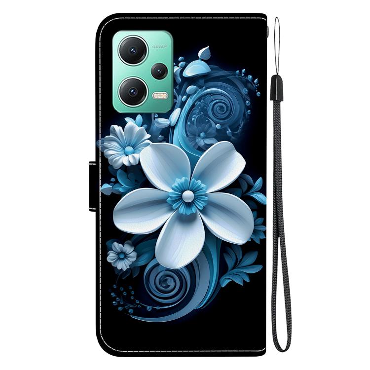 Funda de Cuero con Dibujo de Colores y Textura de Cristal para Redmi Note 12 5G/Poco X5 (Orquídea Negra)
