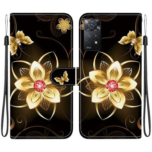 Funda de Cuero con Dibujo de Colores y Textura de Cristal para Redmi Note 12 Pro 4G (Flor Dorada)