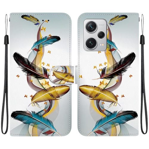 Funda de Cuero con Dibujo de Colores y Textura de Cristal para Redmi Note 12 Pro+ 5G (Plumas de Mariposa Doradas)