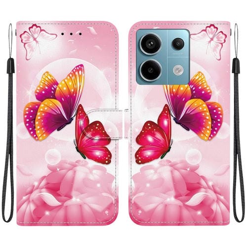 Funda de Cuero con Dibujo de Colores y Textura de Cristal para Redmi Note 13 Pro 5G (Mariposas Rosas)