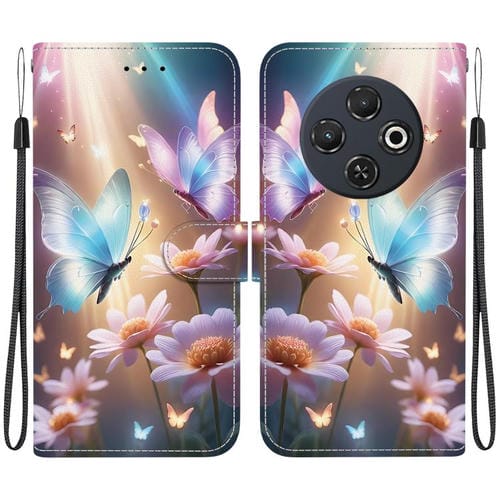 Funda de Cuero para Tecno Spark 30C con Dibujo de Colores y Textura de Cristal (Mariposa, Amor y Flores)