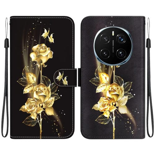 Funda de Cuero Honor Magic 7 Pro con Dibujo de Colores y Textura de Cristal (Mariposa Dorada y Rosa)