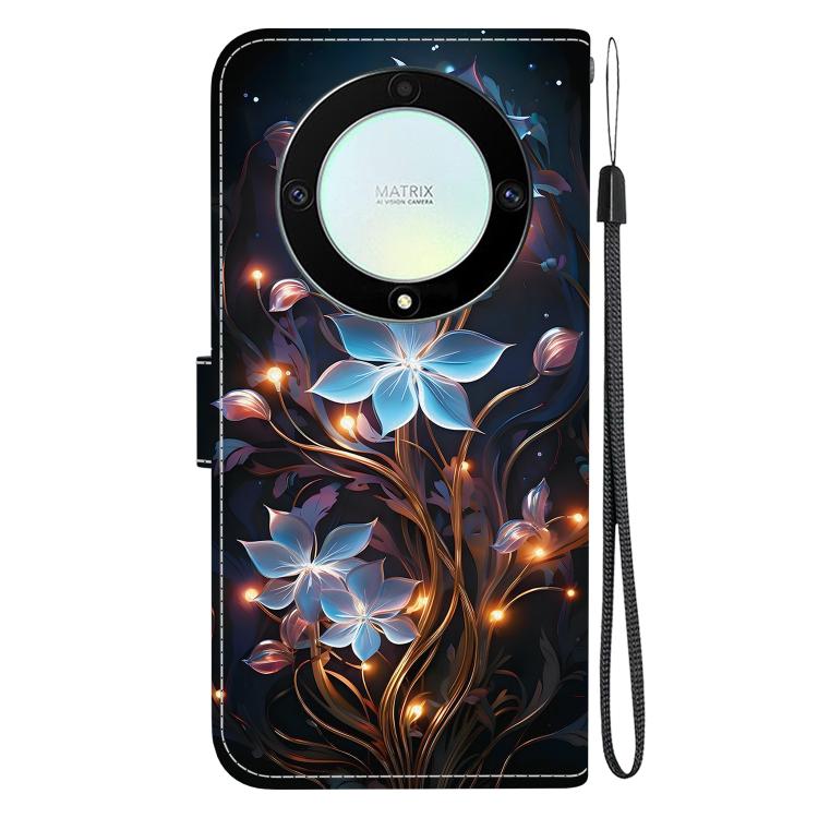 Funda de Cuero Honor X9A con Dibujo de Colores y Textura de Cristal (Flor de Linterna Pequeña)