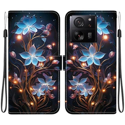 Funda de Cuero con Dibujo de Colores y Textura de Cristal para Xiaomi 13T/13T Pro (Flor de Linterna Pequeña)
