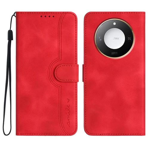 Funda de Cuero con Diseño de Corazón Inteligente para Honor X60/X9C (Rojo)