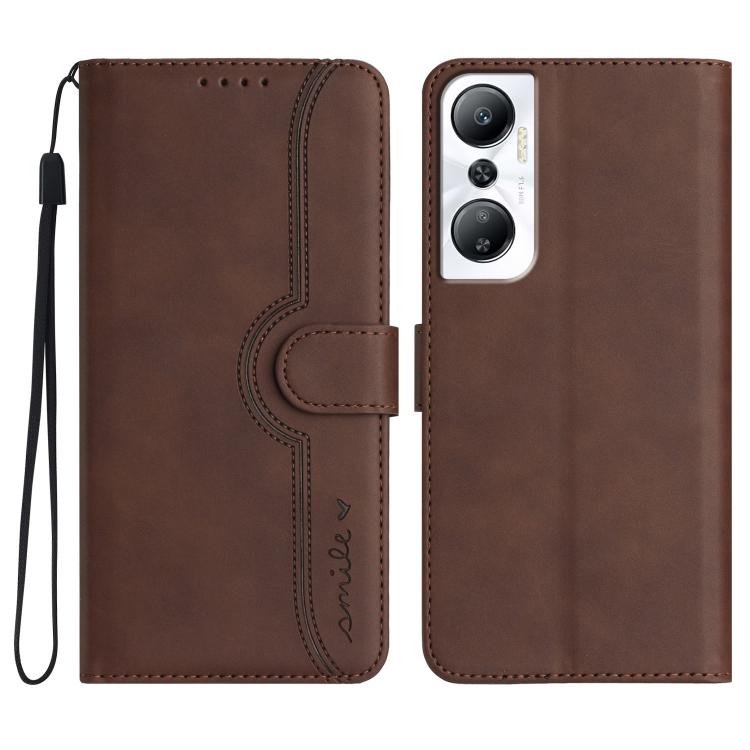 Funda de Cuero para Infinix Hot 20 4G con Diseño de Corazón (Marrón)