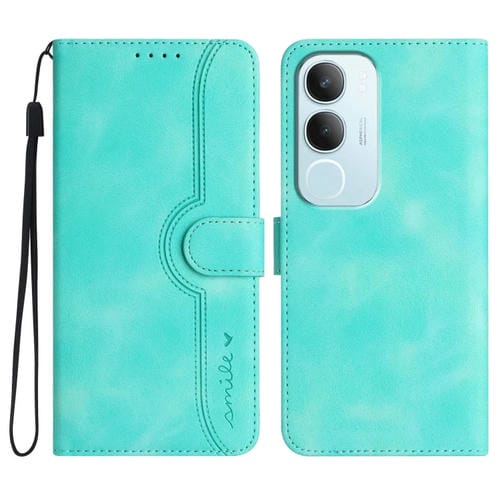 Funda de Cuero con Diseño de Corazón para Vivo Y19S (Azul Claro)