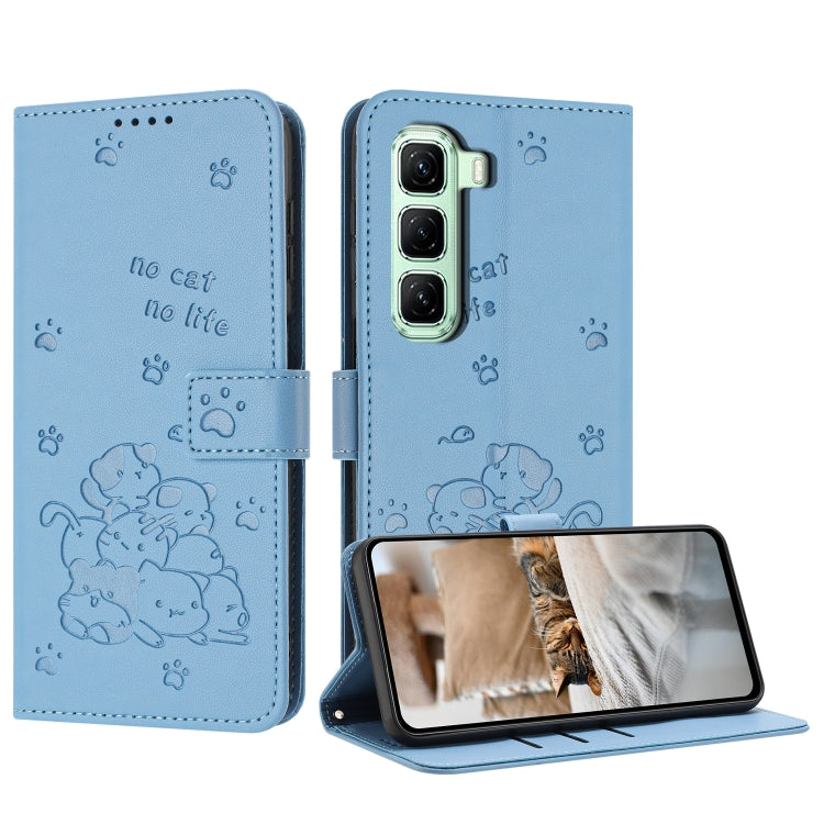 Funda de Cuero Infinix Hot 50 Pro 4G con Diseño de Gatito en Relieve y Cordón (Azul)