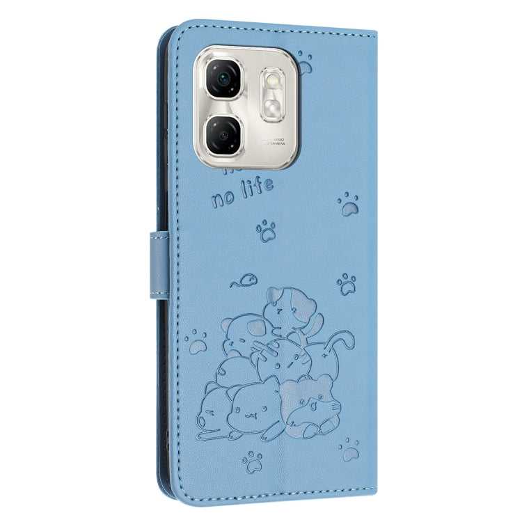 Funda de Cuero para Infinix Smart 9 5G Hot 50I 5G con Diseño de Gatito en Relieve y Cordón (Azul)
