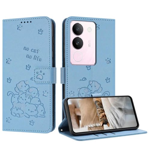 Funda de Piel con Diseño de Gatito En Relieve y Cordón para Vivo S17/S17 Pro/S17T (Azul)