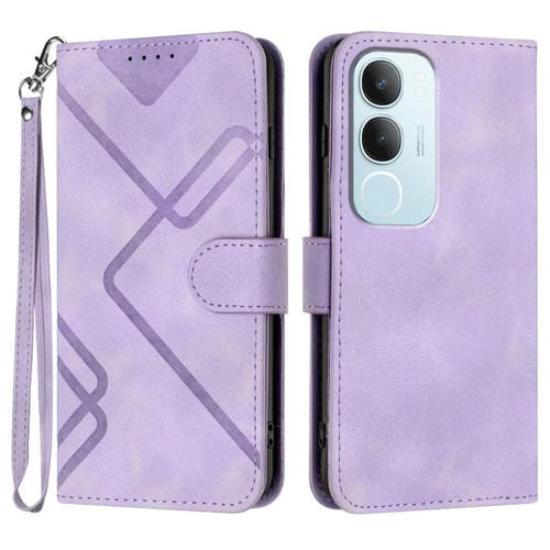 Funda de Cuero con Textura de Piel y Patrón de Líneas Globales para Vivo Y19S (Morado Claro)