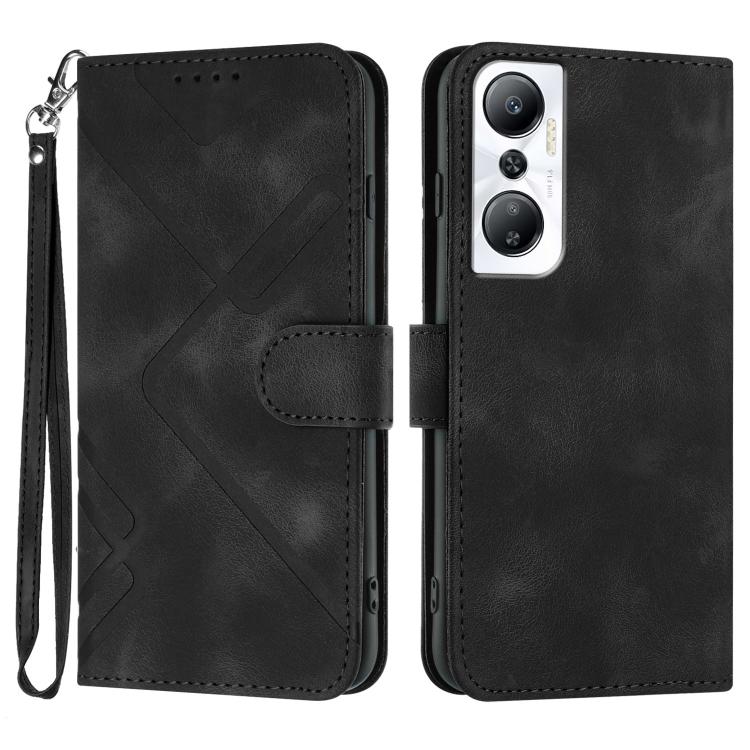 Funda de Cuero para Infinix Hot 20 4G con Diseño de Líneas y Tacto Suave (Negro)