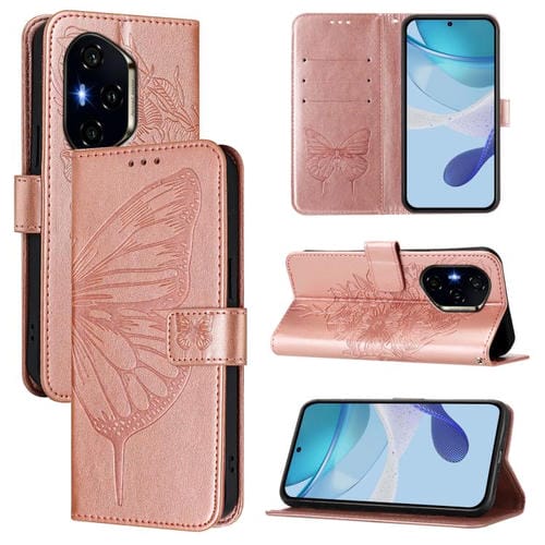 Funda de Cuero para Honor 300 Pro/300 Ultra con Diseño de Mariposa En Relieve (Oro Rosa)