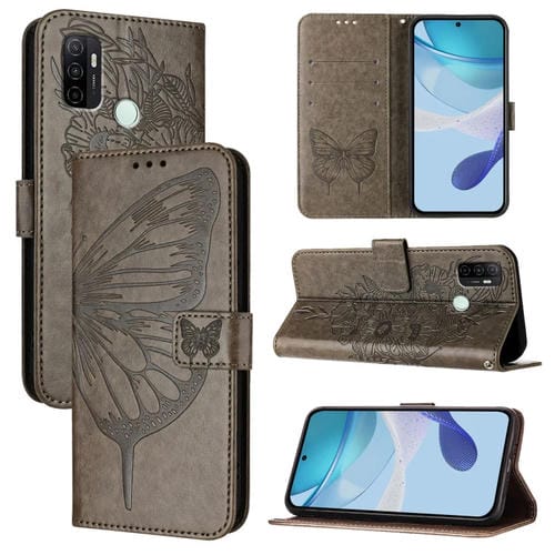 Funda de Cuero con Diseño de Mariposa En Relieve para Oppo A53S 4G/A33 2020 4G (Gris)